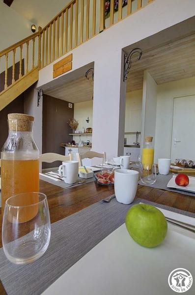 In the heart of a hamlet of Servignat, in the countryside, Emmanuel offers 3 guest rooms with soft and refined decoration, located upstairs, and in the extension of the owners' residence. In this completely renovated old Bressanne farmhouse, via an independent entrance, you access a living room, from which access to the bedrooms is via a staircase. The landing opens onto the first bedroom with a 160*200 double bed, the second bedroom is equipped with a 160*200 bed and a single bed (suitable for a child) and finally the last bedroom includes a 160 double bed. All rooms have a desk and a bathroom with private WC in the room. Breakfasts and the table d'hôtes (by reservation) prepared with local and homemade products, are taken on the covered terrace in summer or in the dining area intended for guests. A relaxation lounge, overlooking the living room, is equipped with a library area, so you can take time to daydream.
