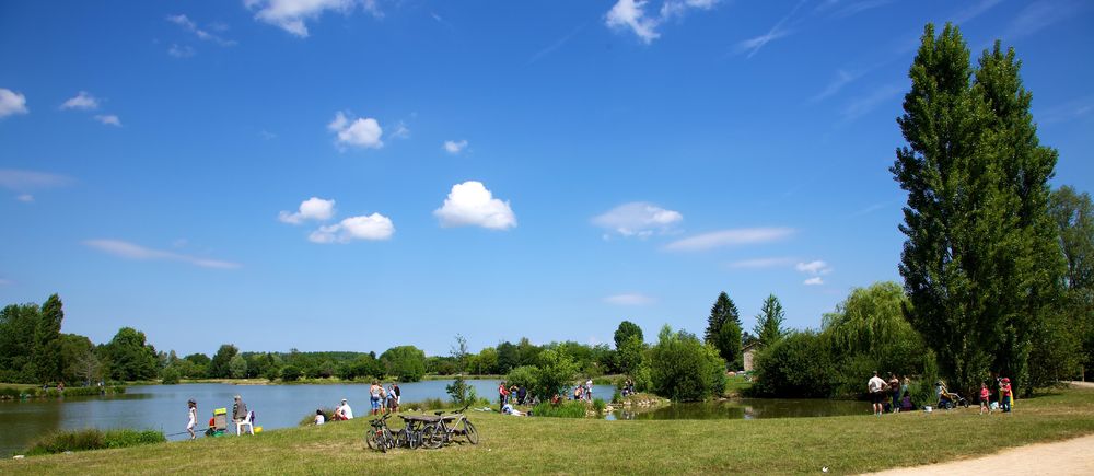 1. Depuis l’Office de Tourisme prenez le chemin direction Carrefour Contact, et tournez ensuite à droite et tout de suite à nouveau à droite (passage étroite, attention aux personnes venant de l’autre sens). Vous arrivez au plan d’eau.
