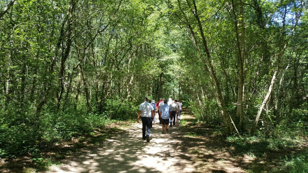 Départ de la mairie d'Arbigny pour aller à la découverte du bois et du bocage environnant, la volaille de Bresse et le moulin bief.