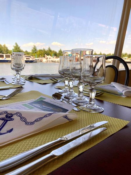 Croisière sur le Canal de Pont-de-Vaux, la Saône et la Seille jusqu'à La Truchère et retour. Passage des écluses de Pont-de-Vaux et La Truchère. Repas à bord.
