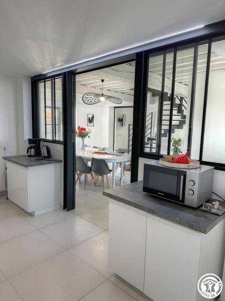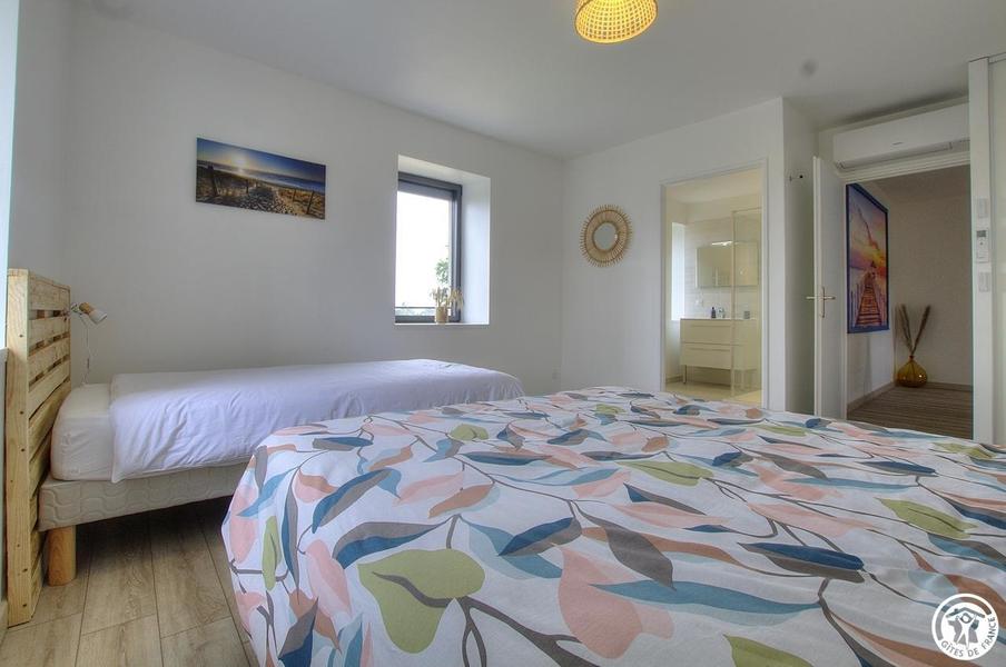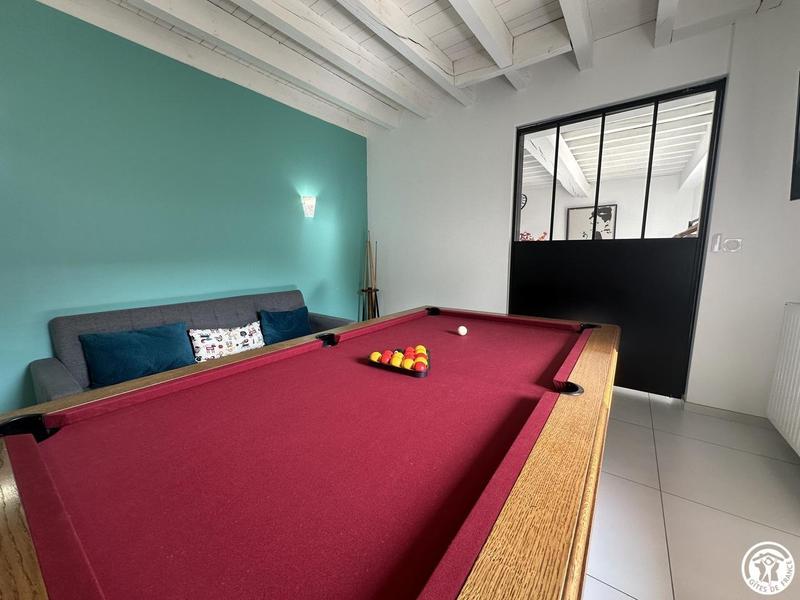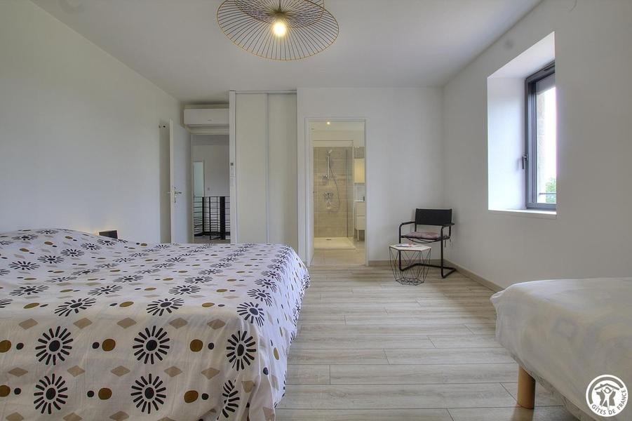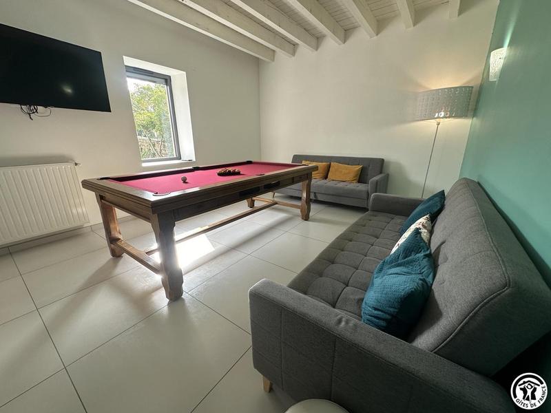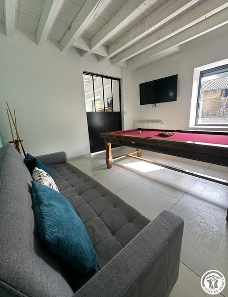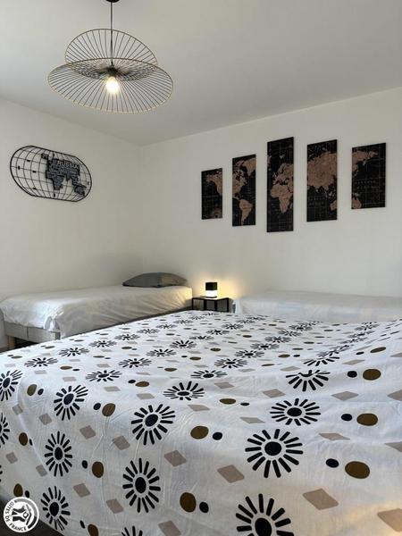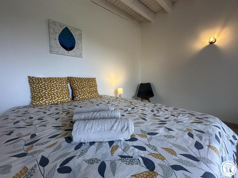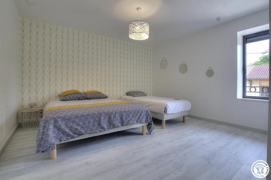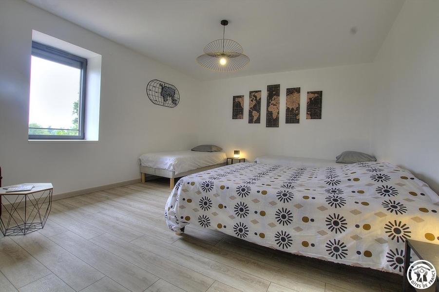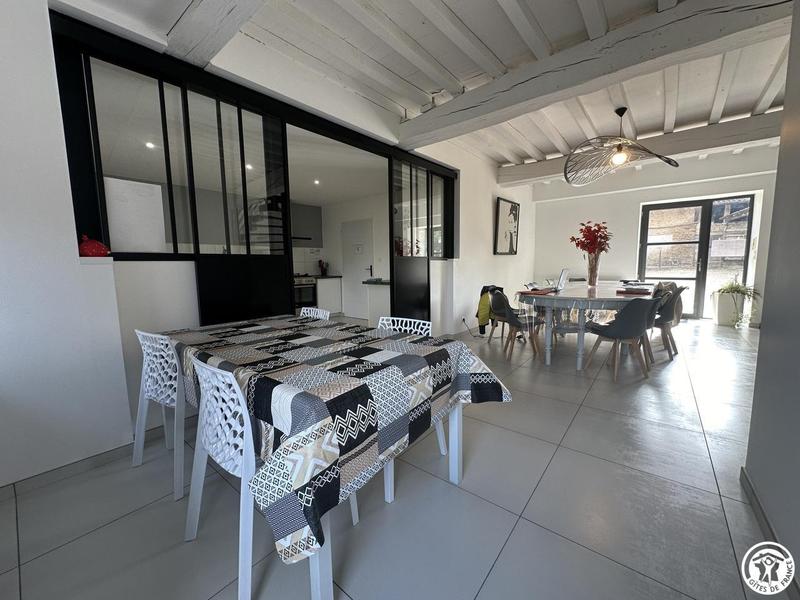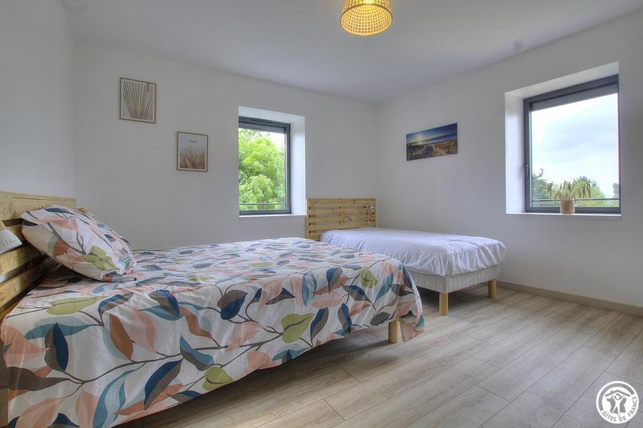 Au rez-de-chaussée, entrée principale sur une grande pièce de vie avec cuisine équipée et lumineuse. Une chambre accessible aux personnes en situation de handicap avec salle d'eau et WC (3 personnes – 1 lit double – 1 lit simple). A l'étage 4 autres chambres : un peu "d'exotisme" pour cette chambre avec accès sur le balcon (1 lit 140*190), la chambre Chic pour 3 personnes (1 lit 160*200 et 1 lit 90*200), pour voyager choisissez la chambre Découverte pour 4 personnes (1 lit 160*200 et 2 lits 90*200), pour un moment Nature, alors cette chambre pour 3 personnes est faîte pour vous (1 lit 160*200 et 1 lit 90*200). Un plus : toutes les chambres sont équipées d'une salle d'eau et d'un WC privatif. Cour privée. Pour un service plus complet : réservez soit à la chambre, soit en gestion libre. Les lits faits à l'arrivée, linge de toilette et charges comprises. Pour le ménage, un montant de 110€ sera demandé. Chauffage fioul.