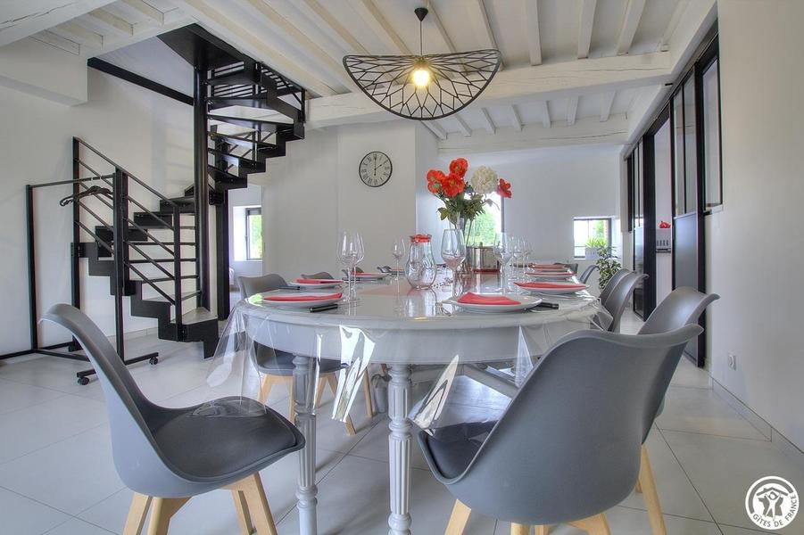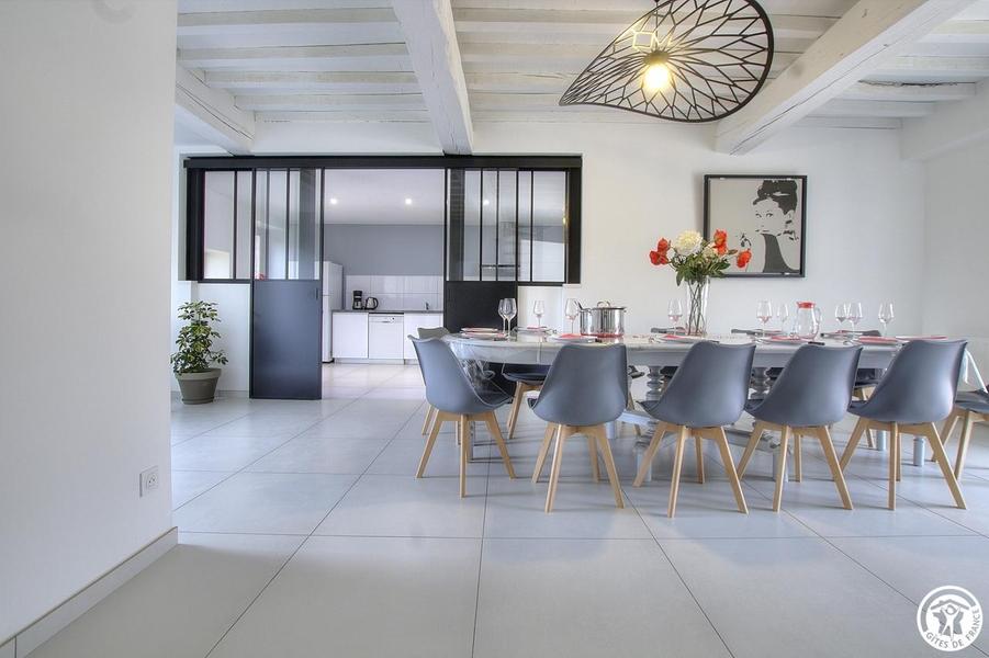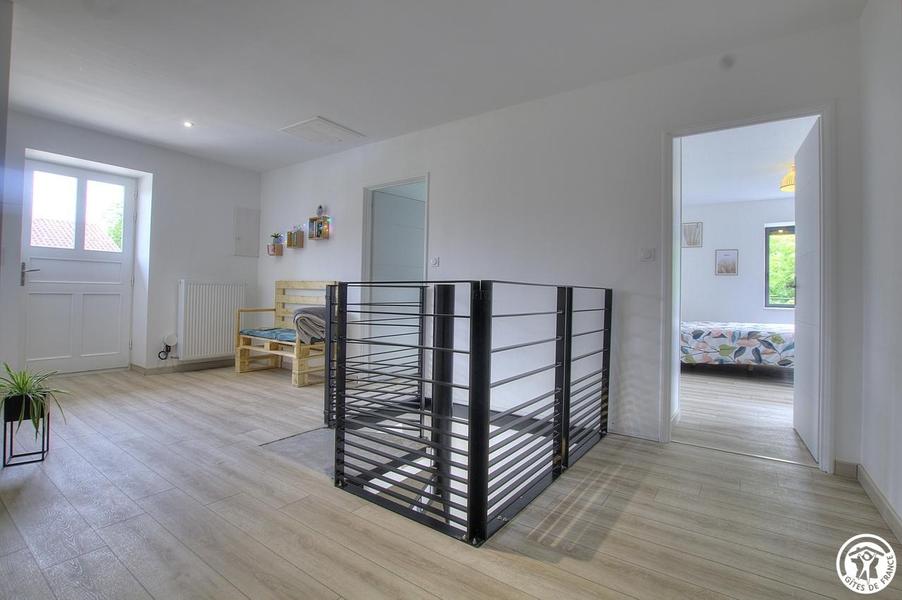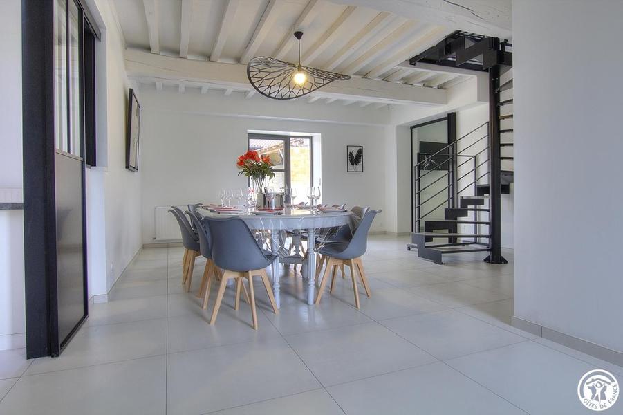 Au nord de la Bresse, à 5 km du Port de plaisance de Pont de Vaux, venez visiter cette petite ville dynamique avec son marché hebdomadaire. Vous pourrez découvrir la richesse du terroir à travers la culture, la gastronomie. Une nature toujours verdoyante pour déambuler sur les sentiers pédestres. Une petite balade au cœur d'un site remarquable ? Alors chaussez-vous et gravissez ce petit sommet pour un panorama spectaculaire sur les vignobles du Mâconnais. De retour, profitez des extérieurs : terrasse couverte pour une petite collation ou partager un moment grillage, jardin avec transats pour se ressourcer. Et pourquoi pas une partie de pétanques. A l'intérieur, une grande pièce de vie lumineuse. Un peu de répit… ressourcez-vous dans le salon avec TV. Une petite recette dont voici les ingrédients : une décoration épurée et moderne, un soupçon d'industriel, une petite pincée de couleurs…