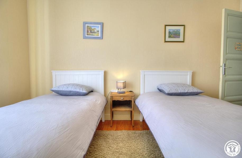 1er étage : 5 chambres (Ambre avec 2 lits 90×190, en enfilade avec la chambre Onyx (1 lit 140*190) avec salle d'eau intégrée, chambre Rubis (1 lit 140*190) avec en enfilade la chambre Agathe (2 lits 90*190) et la chambre Jade (1 lit 140*190). WC indépendant.