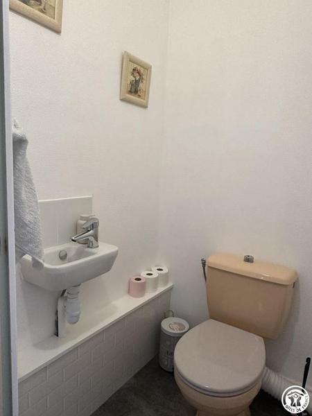 Rez-de-chaussée : séjour avec sa grande table, cuisine équipée, salon avec poêle à granulés, salle d'eau avec WC.