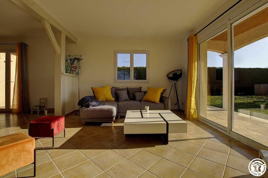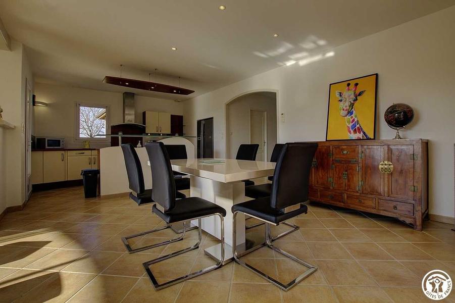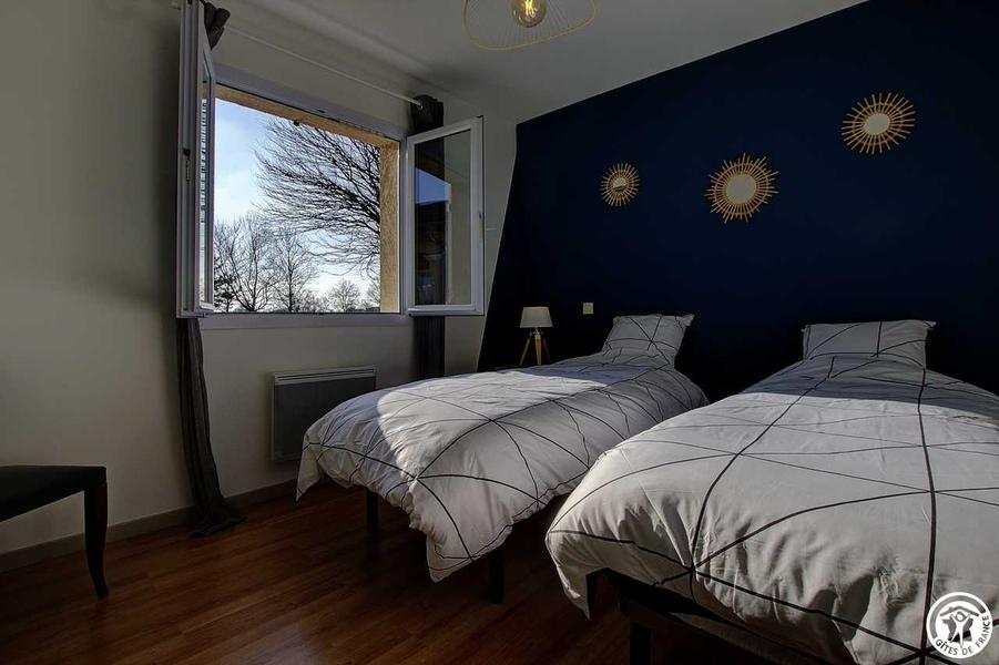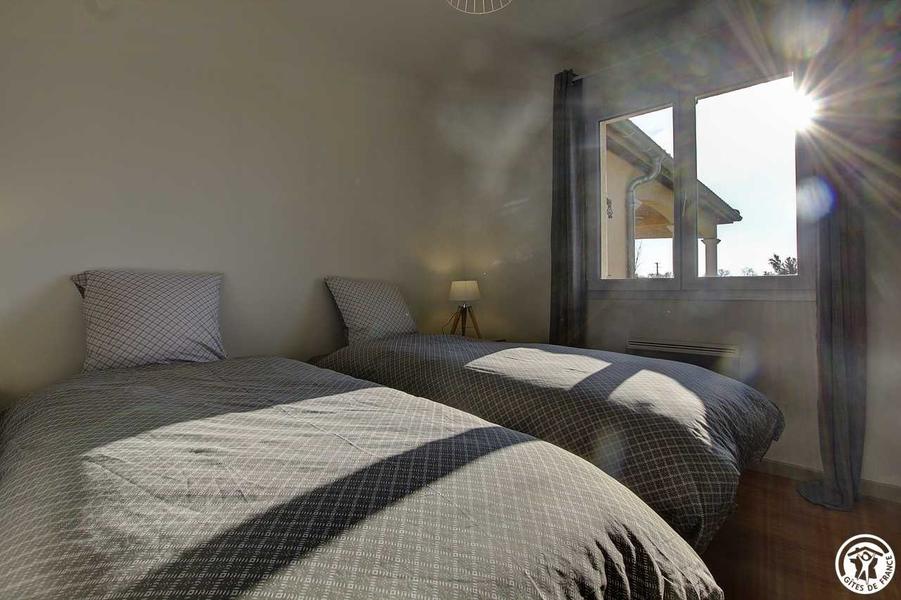 Au cœur de la Bresse, aux portes de Pont-de-Vaux et son port, le Gîte 'Les 3 Rivières' peut accueillir 6 personnes grâce à ses 3 chambres. Cette maison climatisée (panneaux solaires ) indépendante et de plain-pied est sur une propriété fermée avec piscine privative et accessible uniquement à la belle saison. Par un portail sécurisé, vous accéderez sur une cour devant la porte principale. L'entrée du gîte donne sur un hall d'entrée s'ouvrant sur une grande pièce de vie très lumineuse comprenant une cuisine équipée et ouverte sur le séjour et le salon. Dans le prolongement, un couloir dessert 3 chambres. La première chambre est équipée d'un lit double (160×200), la seconde chambre aux tons bleus et la troisième aux touches de gris sont dotées de deux lits simples (80×200) chacune. Un dressing pour ranger l'ensemble de vos affaires est à votre disposition. Une salle de bain avec baignoire d'angle et douche ainsi qu'un WC indépendant complètent cet espace. Vous disposerez d'une buanderie avec tout le matériel nécessaire ainsi qu'un espace de rangement. Ce gîte, à la décoration moderne et épurée, possède des terrasses ainsi qu'un espace jardin vers la piscine (avec barrière). Chauffage électrique. Le plus de ce Gîte : les lits faits à votre arrivée, le linge de toilette est fourni et les charges sont comprises. Le temps d'une halte ou d'un séjour, de nombreuses activités vous attendent à proximité du Gîte. Vous pourrez y découvrir la région avec son architecture, sa gastronomie et les vignobles. Pour vous détendre, vous ressourcer ou encore parcourir la Voie Bleue au départ de Pont-de-Vaux, empruntez le chemin qui borde le canal, pour une balade à vélo ou à pied. Le remplissage de l'eau de la piscine et son usage par les locataires peuvent être restreints en application des arrêtés « sécheresse » de la préfecture de l'Ain.