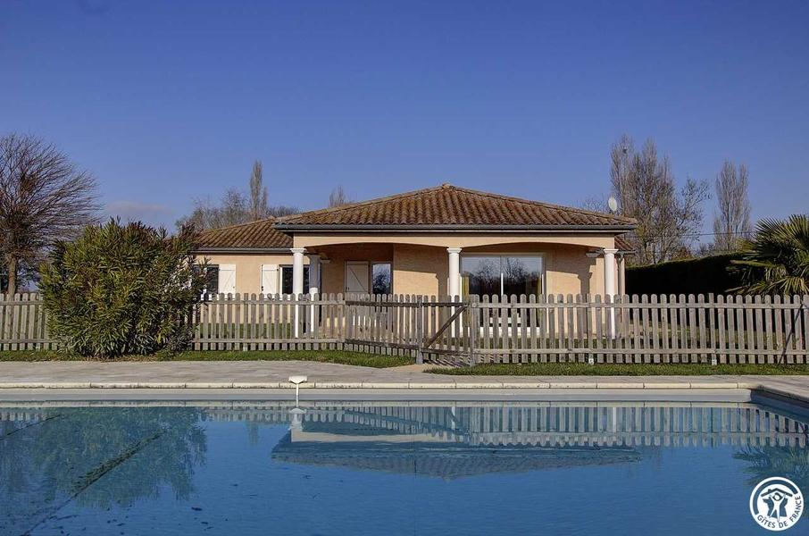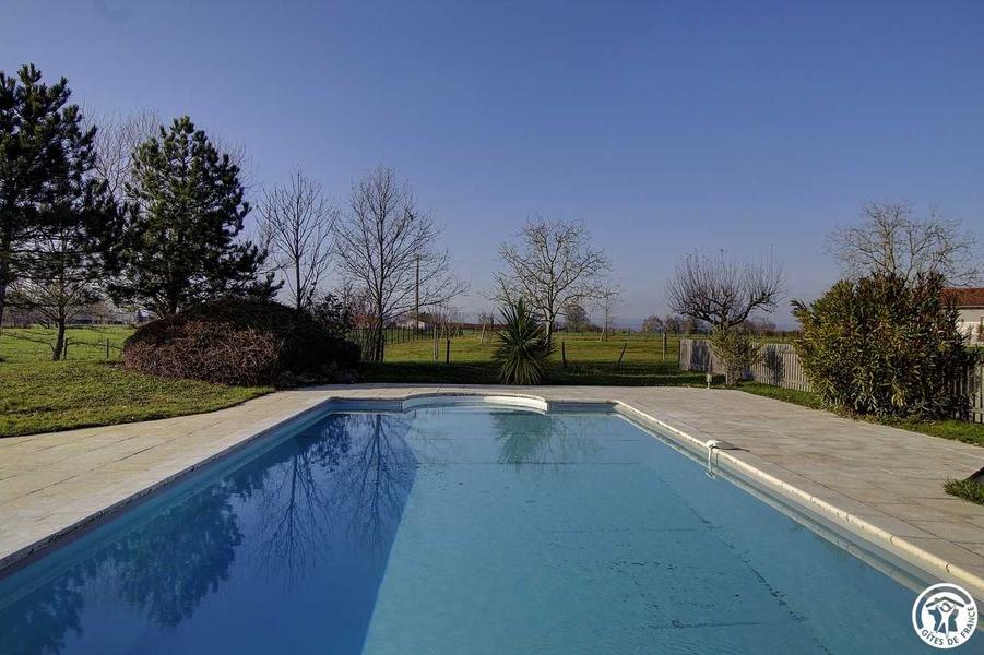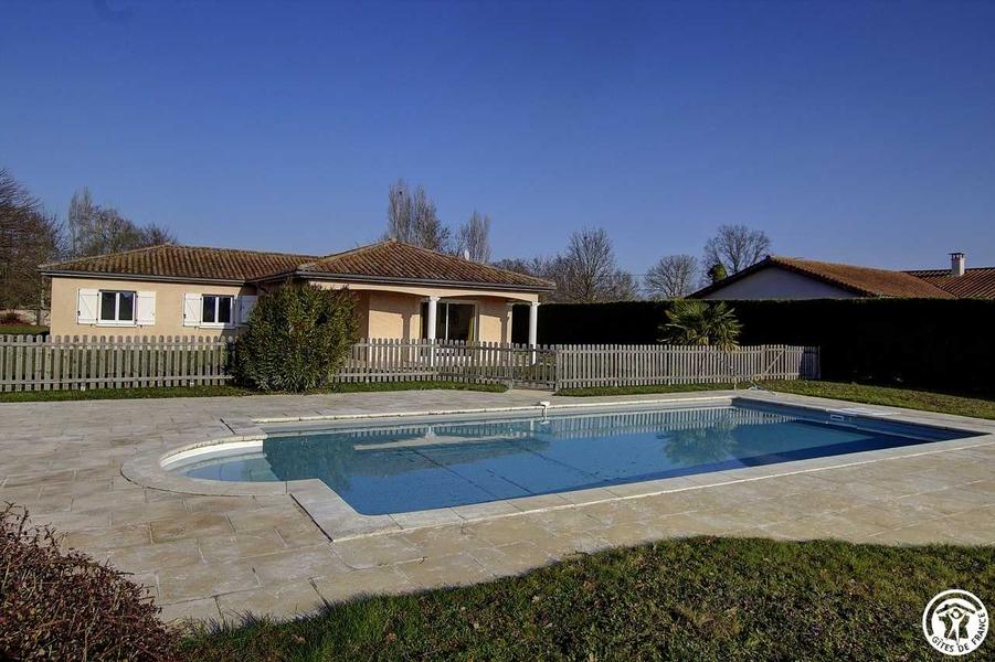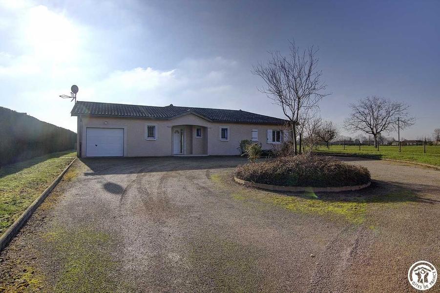 Villa de plain pied située en terre Bressane avec grande piscine privative et vue sur la Bourgogne toute proche.