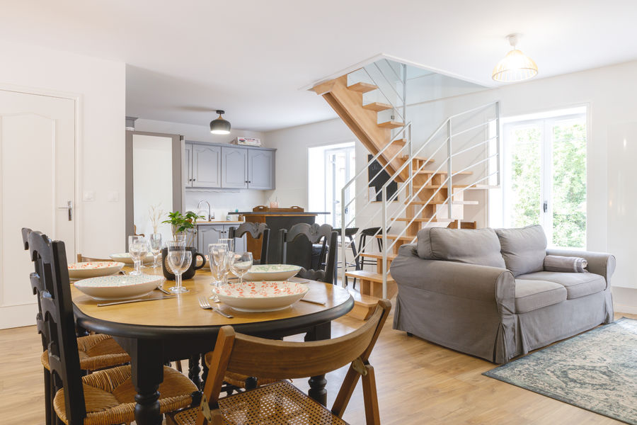 Situé au cœur de la jolie ville de Pont-de-vaux, vous trouverez commerces, restaurants et supermarché à moins de 5 minutes à pieds. La ville possède une piscine ainsi qu'un port de plaisance. Que votre séjour soit professionnel ou familial, vous pourrez profiter d'un environnement agréable et attachant. La maison compte 3 chambres spacieuses, deux salles de bain, une cuisine équipée, machine à laver, sèche linge, WiFi, télévision, un canapé convertible, une terrasses extérieure de 53 mètres carrés, une cour intérieure et un garage.