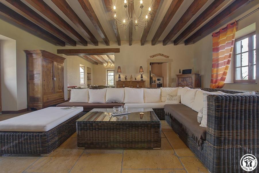 Grand salon avec poêle pour profiter pleinement de la chaleur du bois.