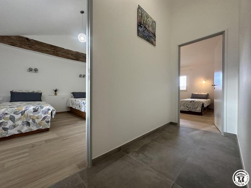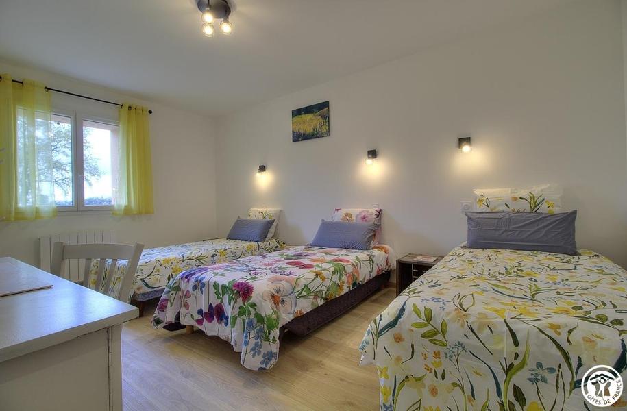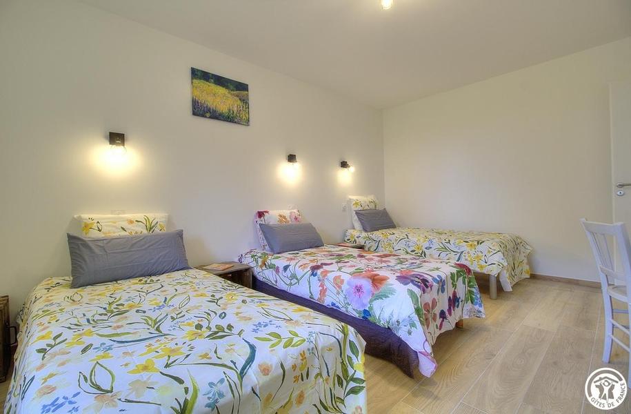 Dans le grand au rez-de-chaussée : cuisine ouverte sur séjour, 3 chambres 2 chambres équipées d'un lit en 140×190 (dont une accessible aux personnes à mobilité réduite) et 1 chambre avec 3 lits en 90×190. 2 salles d'eau dont 1 avec WC intégré. Un WC indépendant. Au 1er : salon avec espace jeux, 2 chambres (1 avec 2 lits en 90×190 et 1 avec 1 lit en 140×190 et 1 en 90×190) WC indépendant.