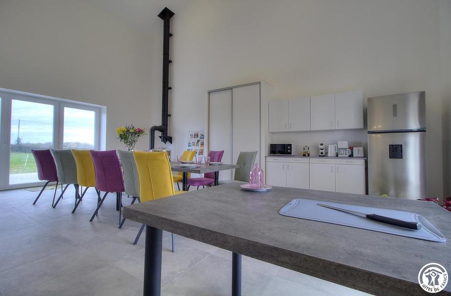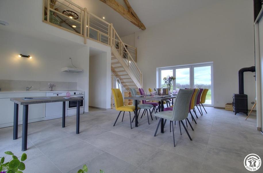 Ce nouveau gîte a été entièrement conçu pour vous proposer 230 m² d'espace de vie, rien que pour vous. C'est la combinaison entre 2 gîtes, un de 12 et un de 2 personnes (G337013 et G337014).