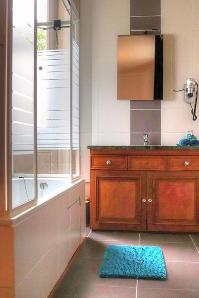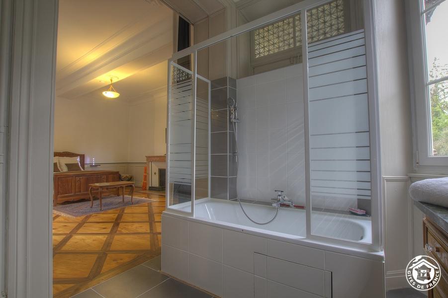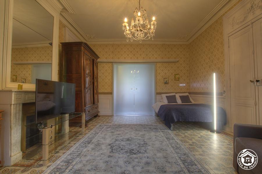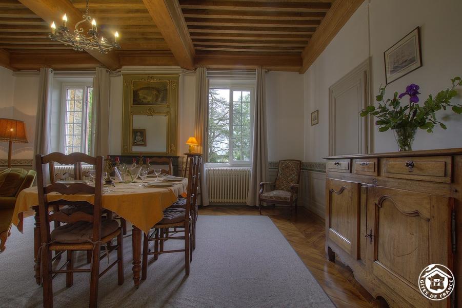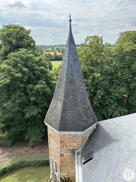 Au rez de chaussée du Château de la Griffonnière datant de 1514, avec ses cinq tours, le gîte Jeannette (166 m2) accueille 6 personnes avec deux chambres sur un seul niveau. Parquets et plafonds à la française, sols d'origine en carreaux de ciment, cheminée d'ornement, véhiculent subtilement l'ambiance du lieu. Vos hôtes Isabelle et Gérard vous accueillent en toute simplicité, un accueil familial et décontracté. Le gîte est conçu comme un U, les 4 pièces communiquent entre elles. L'accès au gîte se fait depuis la cour commune de la propriété, quelques marches séparent la cour de la porte d'entrée. On accède directement au vestibule avec bibliothèque qui ouvre sur la salle à manger et le salon. Dans le prolongement, la cuisine équipée fonctionnelle, WC indépendant avec lavabo. Depuis la cuisine, accès à la chambre du châtelain (1 lit 140) et la salle de bain semi-ouverte qui à l'originalité d'être située dans une des tours du Château. La deuxième chambre, se compose de 2 couchages de 90 x 190 et un canapé convertible pour deux personnes, elle donne directement sur la terrasse couverte avec salon de jardin et vue sur le parc. Grande piscine couverte (10x5m), partagée avec les autres hôtes des autres gîtes situés sur le domaine uniquement à la belle saison, le parc arboré, le verger, le pod « jeux d'enfants » et en option sur réservation la possibilité de bénéficier de « massage bien être ». Chauffage Pompe à chaleur et fioul.. Parking sécurisé, vidéo surveillance de l'entrée du Parc.