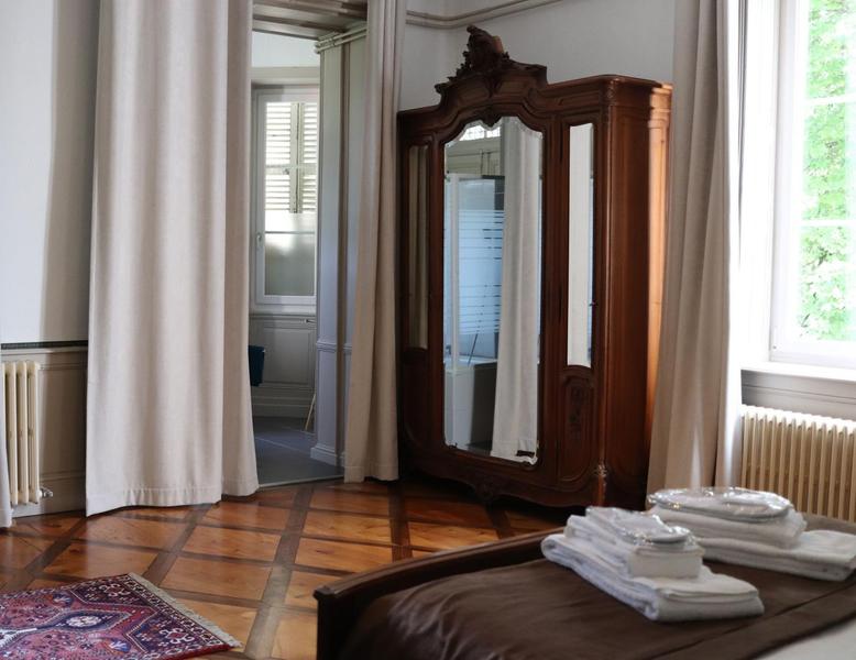 Le château de la Griffonière, aux portes de la Bourgogne, bâtisse en brique rouge du 16ème siècle et reconstruit en partie au 19ème siècle s'élève fièrement dans son bocage bressan. II offre à la fois un mélange « d'histoire à la française » et d'insolite avec ses 2 roulottes. Sur la propriété, vous pouvez séjournez jusqu'à 14 personnes sur deux sites équidistants à 3 minutes d'une marche plaisante dans le parc : d'un côté le gîte Jeannette en RDC du château et de l'autre les roulottes Rhapsodie et Romantic. Pour manger tous ensemble, c'est soit dans le gite Jeannette soit dans le parc. Pour dormir 4 chambres. 2 chambres se situent dans le gite Jeannette , la chambre au parquet à la française avec 1 lit pour 2 personnes , la chambre aux carreaux de ciment avec un lit de 2 personnes et un canapé convertible de 2 personnes. Les 2 autres chambres se situent dans les roulottes, 1 chambre de 4 personnes dans la roulotte Romantique avec 1 lit de 2 personnes et 2 lits de 1 personne (lit gigogne) , 1 chambre de 4 personnes la roulotte Rhapsodie avec 2 espaces privatifs : un avec 1 lit de 2 personnes et un avec 2 lits de 1 personne . Draps, linge de toilettes et ménage de départ compris. Pour se baigner à la bonne saison, la piscine couverte (10x5m), partagée avec les hôtes des autres gîtes situés sur le domaine, le Pod bien être (sur réservation) et le Pod « salle de jeu pour les enfants » et bien évidemment en libre accès le parc arboré, le verger, le cèdre, la tonnelle.