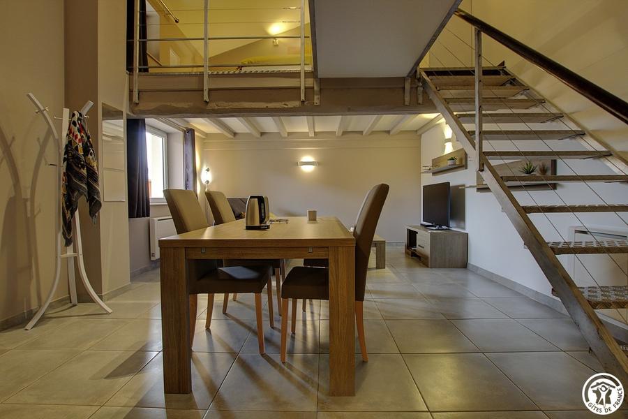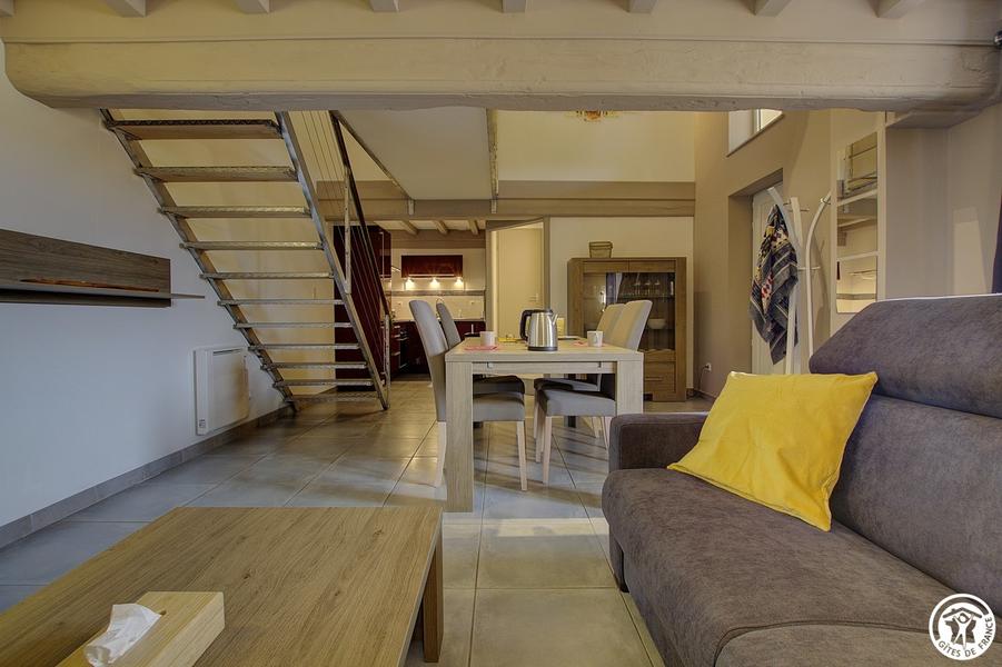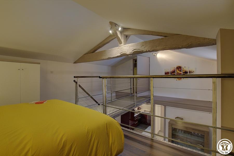 Idéalement situé entre Bresse et Bourgogne, sur les abords de Replonges, dans un quartier calme et paisible, ce Gîte en duplex peut accueillir jusqu'à 3 personnes. Par la cour commune avec les propriétaires, vous accéderez au Gîte par un portillon donnant sur une terrasse privative et la piscine partagée avec les propriétaires (9,30 m x 4 m et profondeur de 1,10 m à 2 m) mise à votre disposition uniquement à la belle saison. Le remplissage de l'eau de la piscine et son usage par les locataires peuvent être restreints en application des arrêtés « sécheresse » de la préfecture de l'Ain. L'entrée indépendante du Gîte donne sur un séjour-salon ouvert sur une cuisine équipée et fonctionnelle. Une marche plus haut, la salle d'eau ainsi qu'un WC indépendant. Depuis le séjour , un escalier en métal vous amènera à une mezzanine composée d'un lit double (160×200) avec vue sur la pièce de vie et la piscine. Une passerelle la relie à une chambre dotée d'un lit simple (90×190) et un coin salon et espace lecture. Le chauffage est électrique. Les plus du gîte : les lits sont faits à votre arrivée, le linge de toilette est fourni et les charges sont comprises. Sur place, un parking privé à l'extérieur de la propriété est mis à votre disposition. La propriétaire, professeure de yoga, se fera un plaisir de vous proposer des cours de Viniyoga, un yoga à la fois doux et dynamique (se renseigner directement auprès d'elle). Un local à vélos est également mis à votre disposition avec les équipements nécessaires pour l'entretien et ou la réparation. La proximité de Mâcon avec les atouts d'un environnement calme vous séduira.Vous trouverez également à proximité du Gîte, la voie bleue, chemin qui borde le canal, pour une balade à vélo ou à pied. Les services de proximité (boulangerie, supermarché, pharmacie…) sont accessibles à moins de 500 m. Les propriétaires de La Ripalonga, Gîte 'Ecogeste', s'engagent à réduire les consommations énergétiques et à préserver l'environnement.