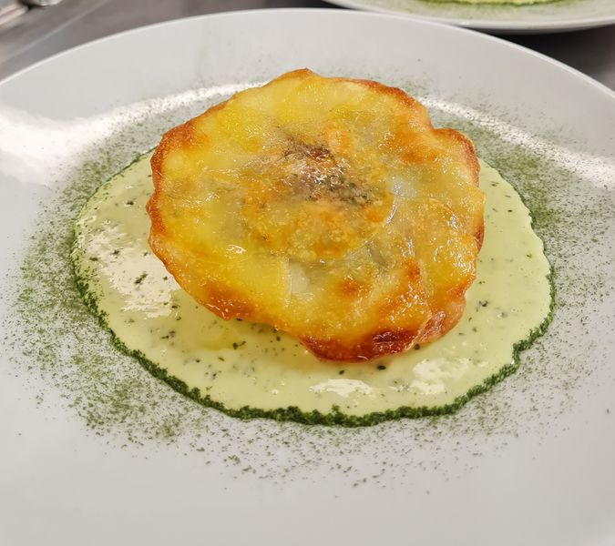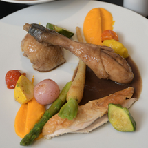Après être passé par les cuisines de Georges Blanc, du Palais de l’Elysée et du Gavroche à Londres, le chef vous reçoit maintenant avec ses menus traditionnels actualisés, influence locale oblige, leur spécialités pomme Anna de grenouilles, sautées comme en Dombes à la crème de beurre d'ail.