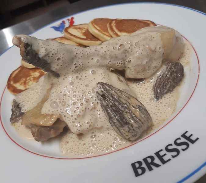 La volaille de Bresse de chez Cyril Degluaire à la crème aux morilles et vin jaune, crêpes parmentières mais aussi une cuisine plus moderne, la palette du berger en trois déclinaisons, filet de bœuf au cœur de foie gras, le confidentiel pour foiegrasphile, chaud froid d'agrumes sont là pour enivrer vos papilles, le tout servi avec, essentiellement, des vins de propriétaires.