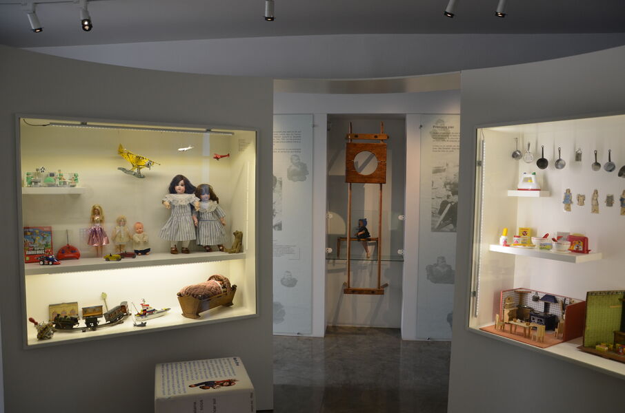 A l’étage jouets et photos de classe et de mariage de 1885 à 1939, collectés sur le territoire, complètent le propos et enrichissent le parcours de visite dédié à l'enfance.