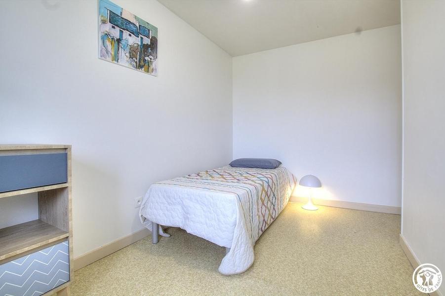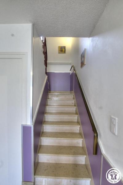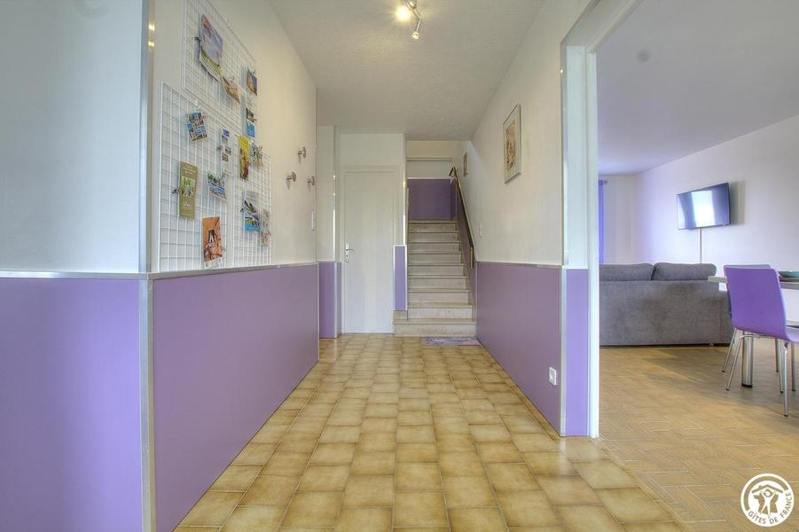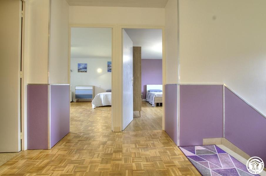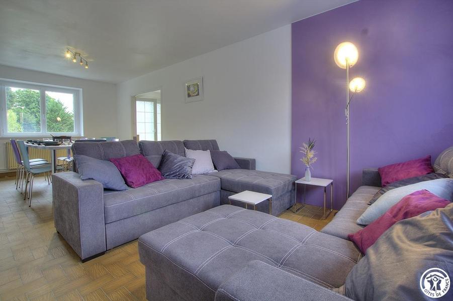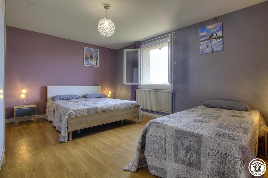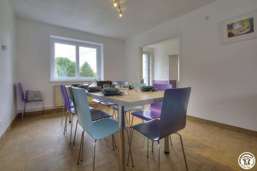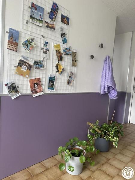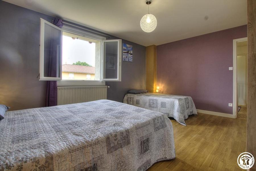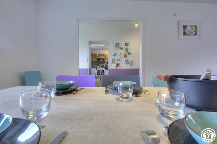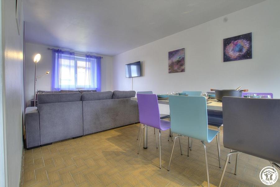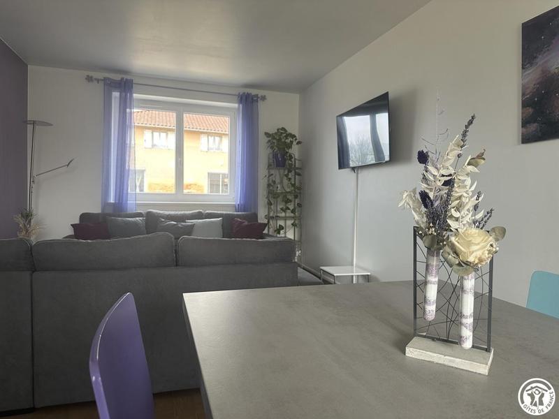 Vous êtes prêts à tous vous retrouver ? Alors préparez vos valises, le gîte vous attend. Saint Bénigne vous offre des activités à faire à proximité. A vous de choisir : l'Archipel avec son Pentagliss et ses bassins nautiques. Empruntez la voie bleue au départ de Pont de Vaux qui borde le canal pour découvrir la richesse des lieux. A pied ou à vélo, des activités au rythme de chacun. Pour les gourmets et les gourmands, venez déguster les spécialités de la Région (Poulet de Bresse, Cuisses de grenouille persillées, etc…). Poursuivez votre découverte en prolongeant votre soirée dans le jardin privé. Laissez vous bercer, en contre bas près de la mare sécurisée, par le cancanement des canards, la cacarde de l'oie. N'hésitez pas à partager vos pelures aux poules qui séjournent dans la cour et qui vous remercieront en vous offrant des œufs. Un espace extérieur vous est dédié pour que les petits et les grands savourent des moments de retrouvailles autour de la grande table de jardin. Nuance mauve est un gîte avec ses touches de couleurs originales à travers les différentes pièces (chaises, murs, tapis, …) La décoration lumineuse a été décidée pour un accueil familiale, conviviale et afin que chacun trouve sa place. Gîte mitoyen, sur la propriété comprenant deux autres gîtes (un gîte de 6 et un gîte de 8 personnes) et vos deux colocataires à 2 pattes (Noisette et Cacahuète). Au rez-de-chaussé : un hall avec une cuisine équipée avec ilot, salle à manger et son coin salon, une chambre (1 lit 140) , salle de bain, WC indépendant.