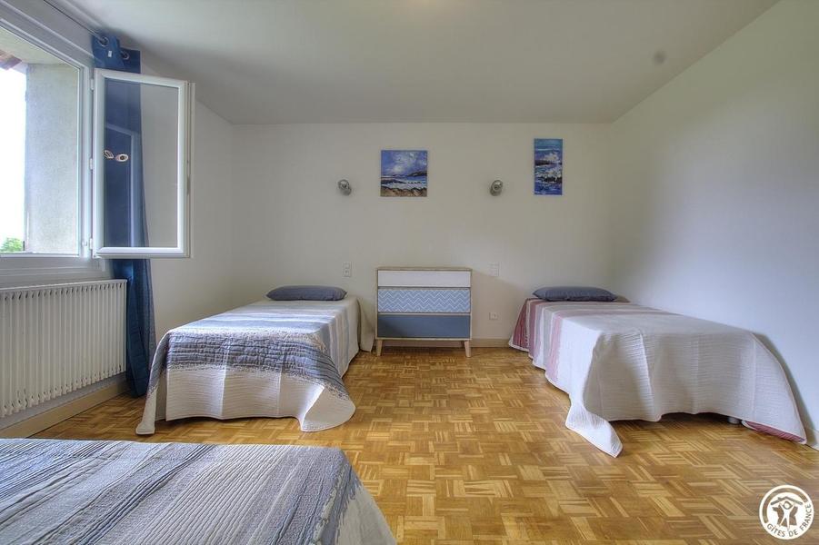 A 1er étage : quatre chambres (1 avec un lit en 90; 1 avec 1 lit en 140; 1 avec 3 lits en 90, 1 avec 1 lit en 160 et 1 lit en 90), salle d'eau avec WC, espace rangement. Compris dans le prix : électricité et chauffage. Le ramassage des œufs en fonction de l'humeur des poules. Reste à votre charge ou à la location : linge de toilette, draps et ménage (100 €). Local vélo. Chauffage électrique. Espace extérieur privé avec cour et jardin.