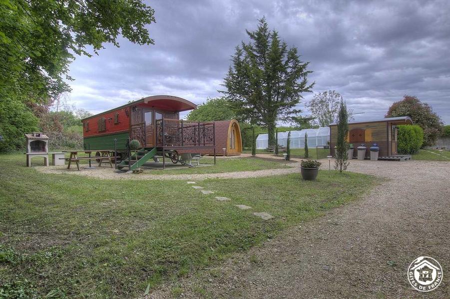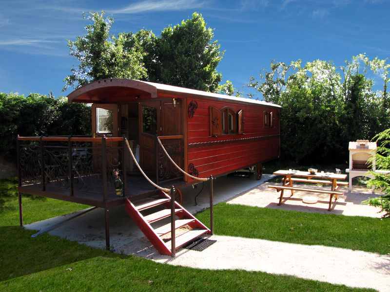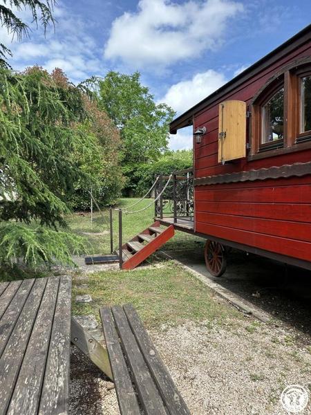 Au cœur de la nature, situé à proximité du château de la Griffonnière, gîte en roulotte (23 m²) pour 4 personnes.