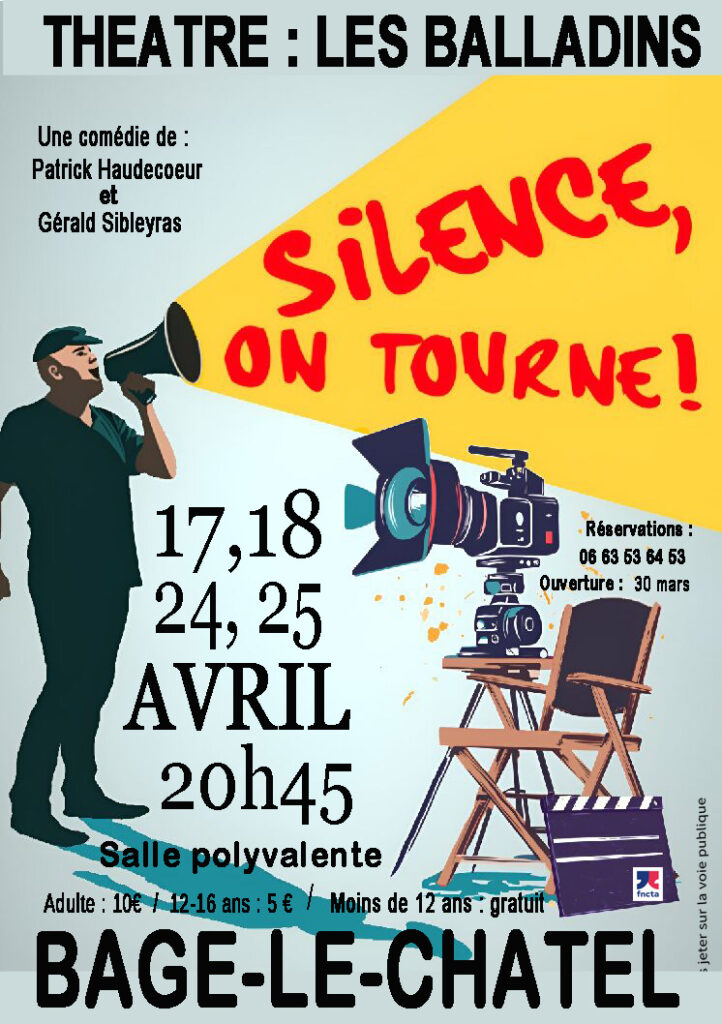 Une comédie de Patrick Haudecoeur et Gérald Sibleyras par la troupe de théâtre Les Balladins. Une équipe de cinéma a investi un théâtre pour le tournage d’un film.