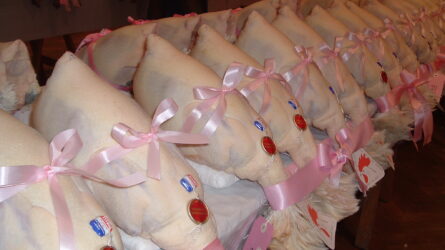 We moeten terug naar 24 december 1865 in Pont-de-Vaux om enig spoor te vinden van de eerste pluimveewedstrijd. De fokkers van Bressan dienen hun mooiste gerolde gevogelte in onder waardering van een jury, bestaande uit ervaren gastronomici, professionals en chefs. De producenten van het mooiste pluimvee ontvangen de Grands Prix d’Honneur.